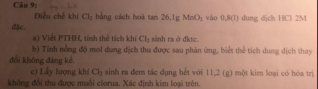 => Dư 0,4 mol HCl. Tạo 0,3 mol Cl2, 0,3 mol MnCl2.
