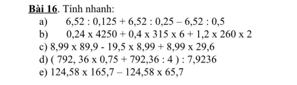 a 6,52 : 0,125 + 6,52 : 0,25 - 6,25 : 0,5