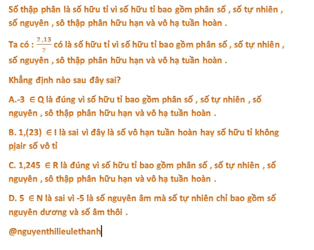 --> số thập phân không phải số hữu tỷ (nhưng nếu SST đổi ra phân số thì nó là SHT)