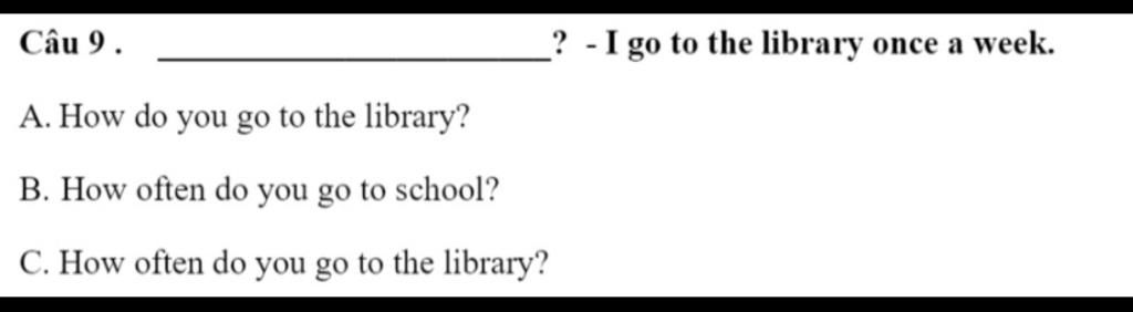 -> dựa cụm "once a week": mỗi tuần một lần (chỉ mức độ thường xuyên) -> đặt câu hỏi với how often: bao lâu (thường hỏi về mức độ thường xuyên)