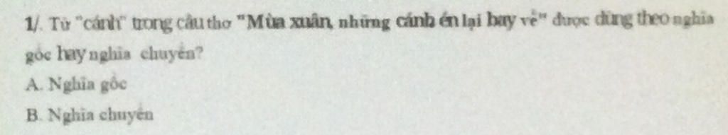 Từ cánh trong câu thơ "Mùa xuân, những cánh én lại bay về" sử dụng theo nghĩa gốc.