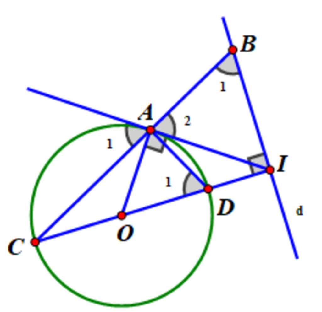 2. Ta có ICB^=CAB^ (góc tạo bởi tia tiếp tuyến và dây cung và góc nội tiếp cùng chắn cung CB).