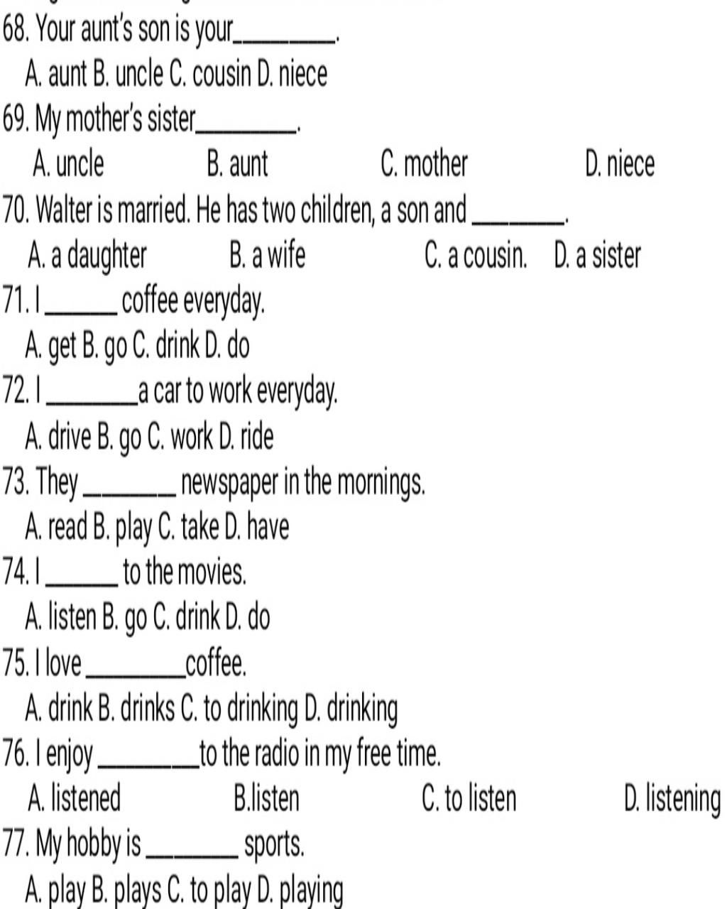 68. C ( con trai của cô, bác mình thì là em, anh họ của mình)