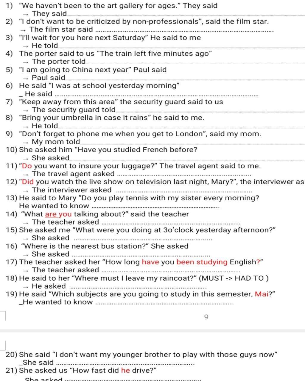 `15)` She asked me what I had been doing at `3` o’clock the day before.