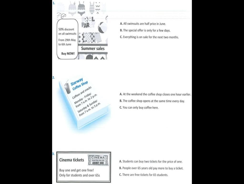 Câu 1: B nói là dịp giảm giá đặc biệt chỉ diễn ra trong ít ngày. (Dòng 3,4)