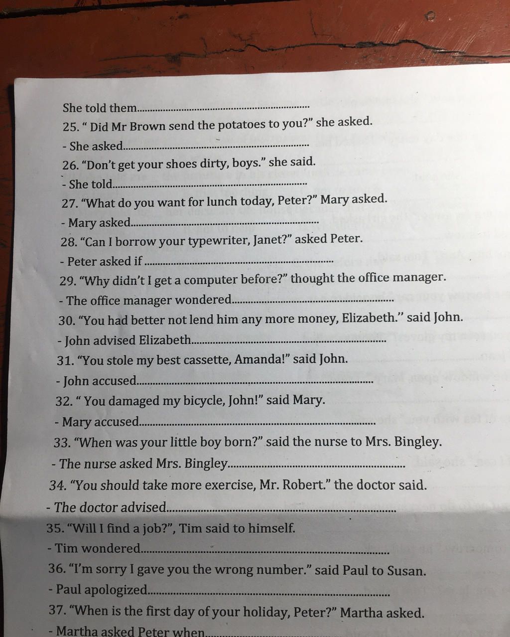 25. " Did Mr Brown send the potatoes to you?" she asked.