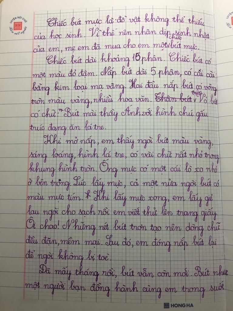 Trong kì thi Violympic cấp tỉnh năm lớp bốn em đạt được giải Nhất mẹ khen em và thưởng cho em một cái bút máy. Thế là từ đó tới nay, bút luôn đồng hành cùng em trên chặng đường học tập mỗi ngày.