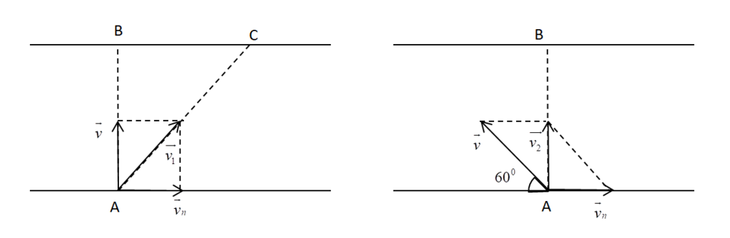 \(v = \frac{{{v_n}}}{{\cos {{60}^0}}} = \frac{2}{{\cos {{60}^0}}} = 4\,\,\left( {m/s} \right)\)