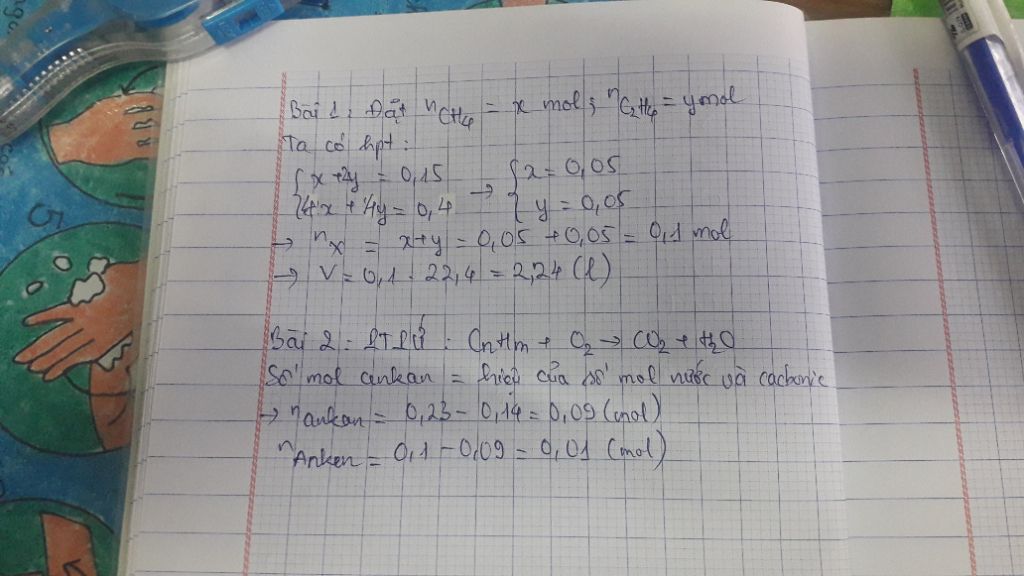 Gọi số mol của $CH_4$ và $C_2H_4$ lần lượt là x và y mol