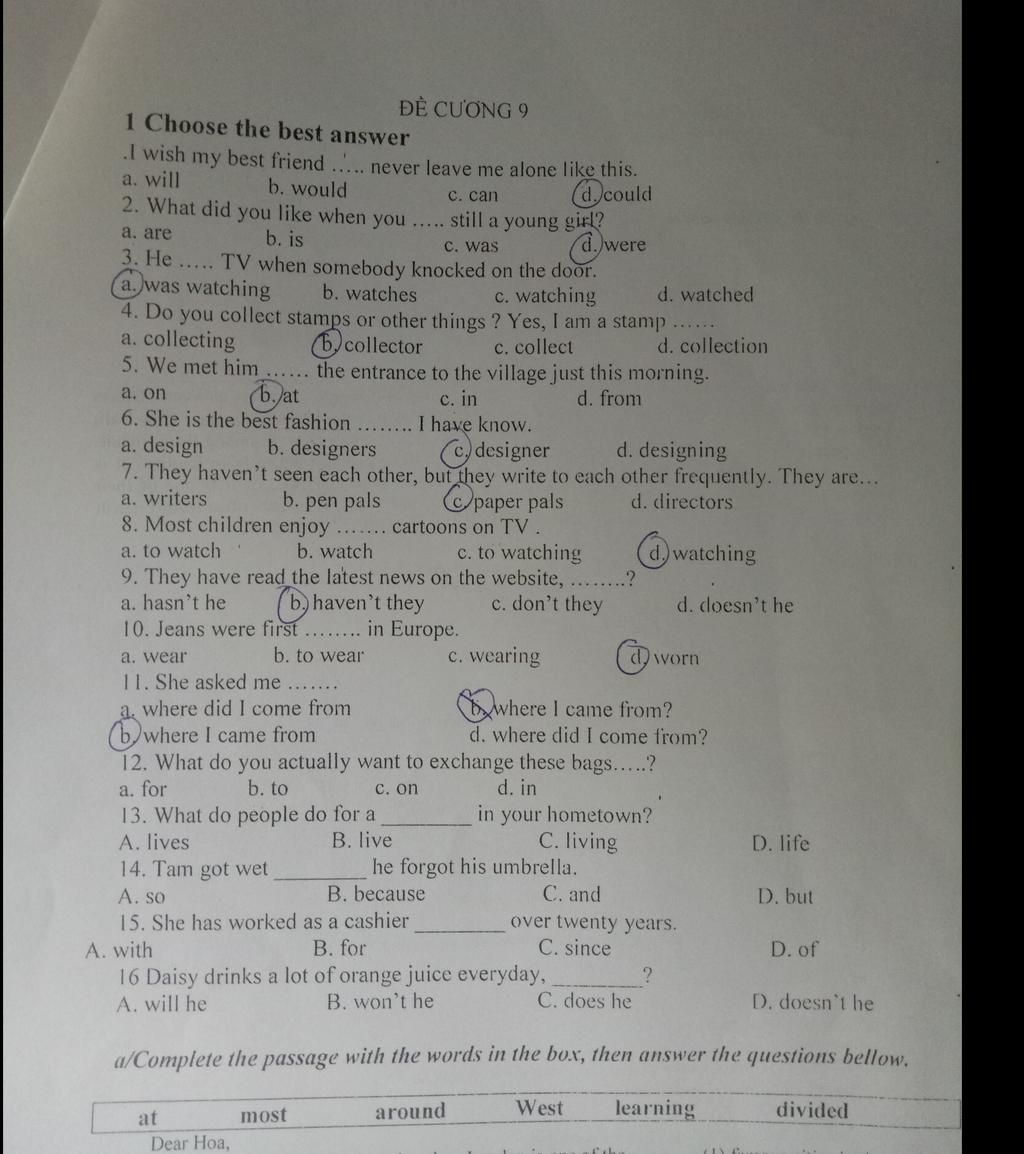 D. Could - là quá khứ của " Can" nghĩa là có thể - không phù hợp