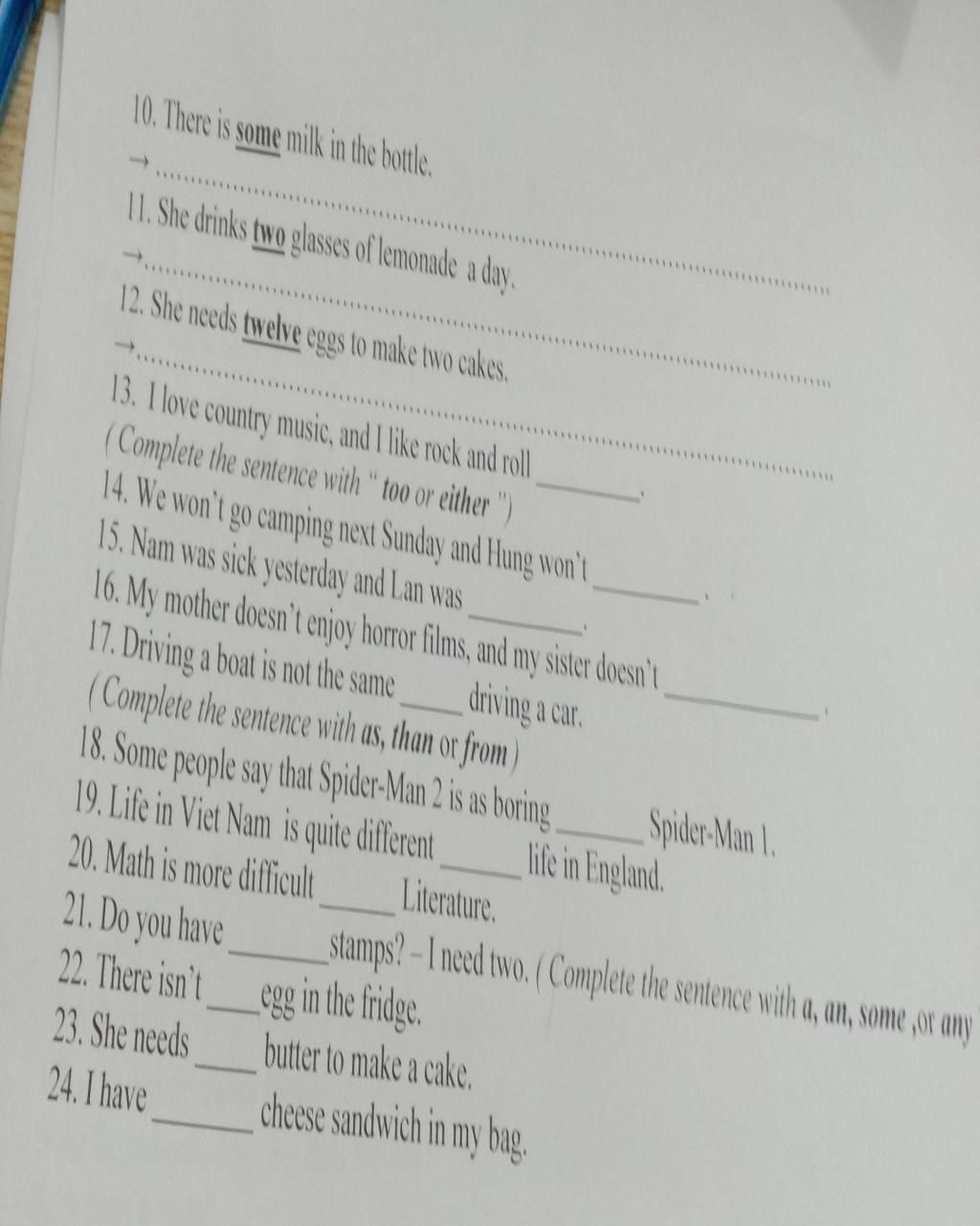 `->` Either dùng cho câu phủ định, có nghĩa giống với too.