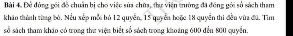 Gọi x là số sách đã đóng gói số sách tham khảo thành từng bó