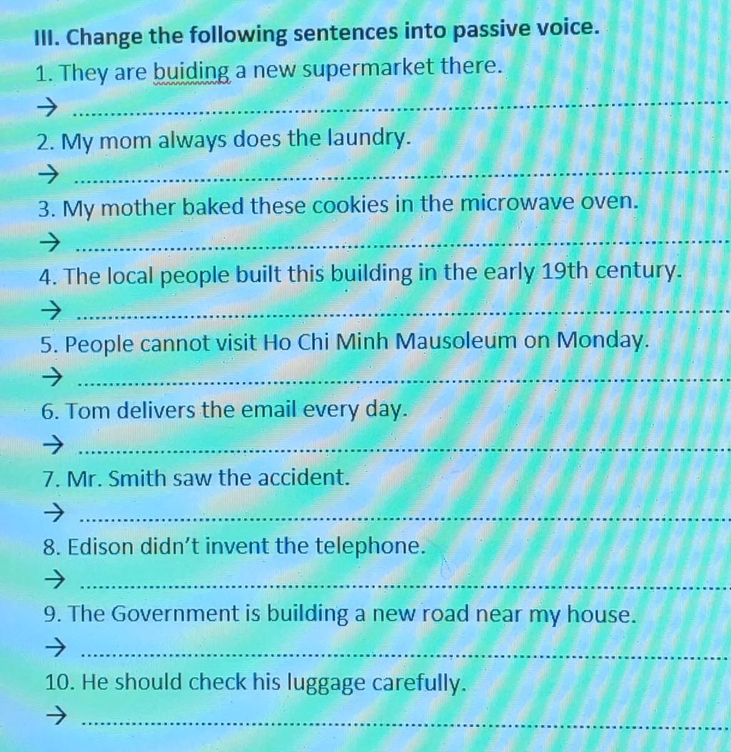 1. A new supermarket was being built .bị động của Ht tiếp diễn.