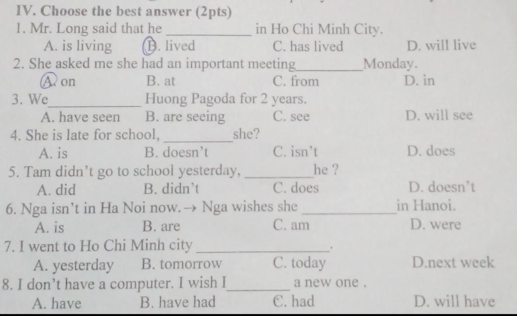 5. A. did ( câu hỏi đuôi ' he didn't' -> ' did he ' )