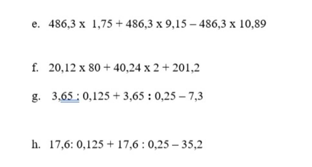 =3,65×8+3,65×4−3,65×2=3,65×(8+4−2)=3,65×10=36,5=3,65×8+3,65×4−3,65×2=3,65×(8+4−2)=3,65×10=36,5 d)17,6:0,125+17,6:0,25−35,2d)17,6:0,125+17,6:0,25−35,2