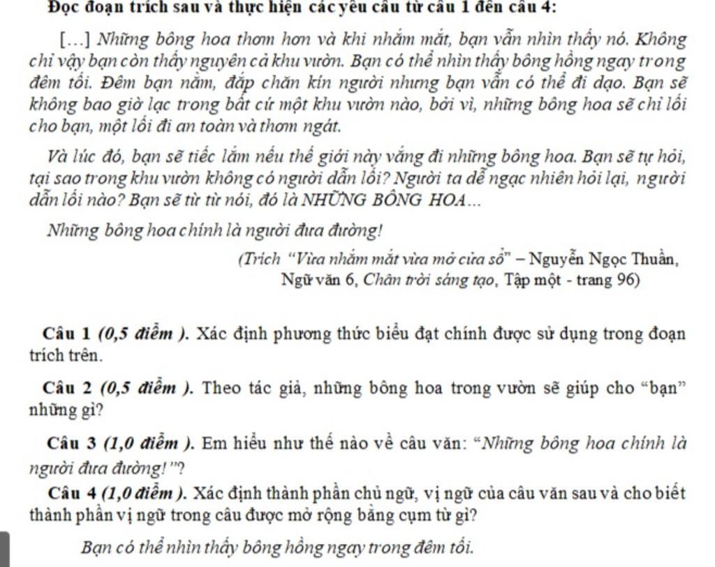 Câu 3 : Em hiểu như thế nào về câu văn: “Những bông hoa chính là người đưa đường!"? Những bông hoa chính là người đưa đường dẫn lối cho ta khi ta lạc lối , nhưng bông hoa sẽ chỉ con đường an toàn và thơm ngát .