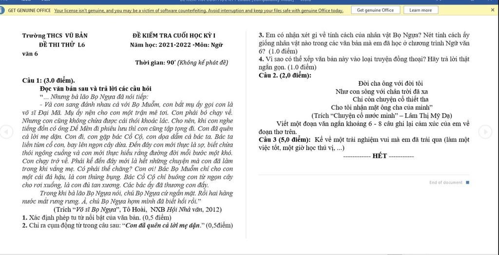 Năm học: 2021-2022 -Môn: N ...