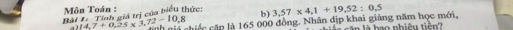 `b, 3,57×4,1 + 19,52 : 0,5`