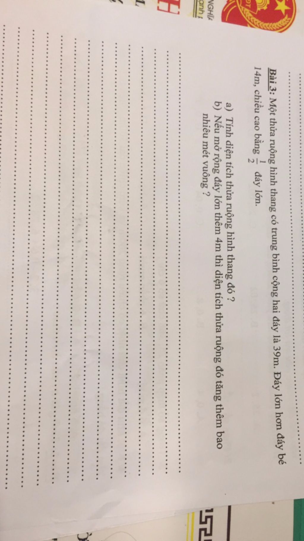 a) Tổng độ dài hai đáy của thửa ruộng đó là