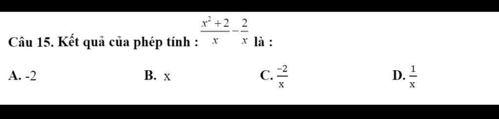 $\dfrac{x^2+2}{x}-\dfrac{2}{x}$