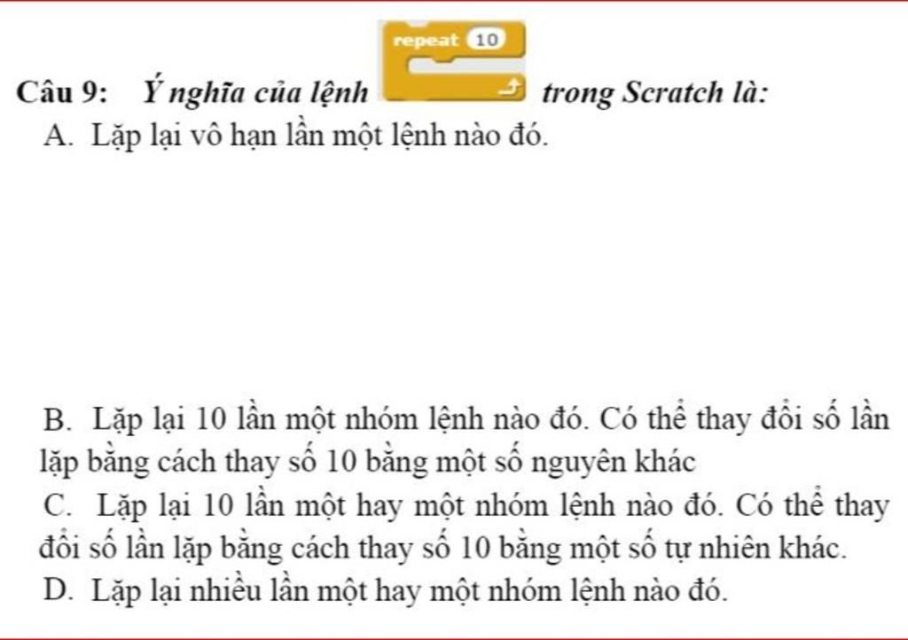 → C. Lặp lại 10 lần... số tự nhiên khác