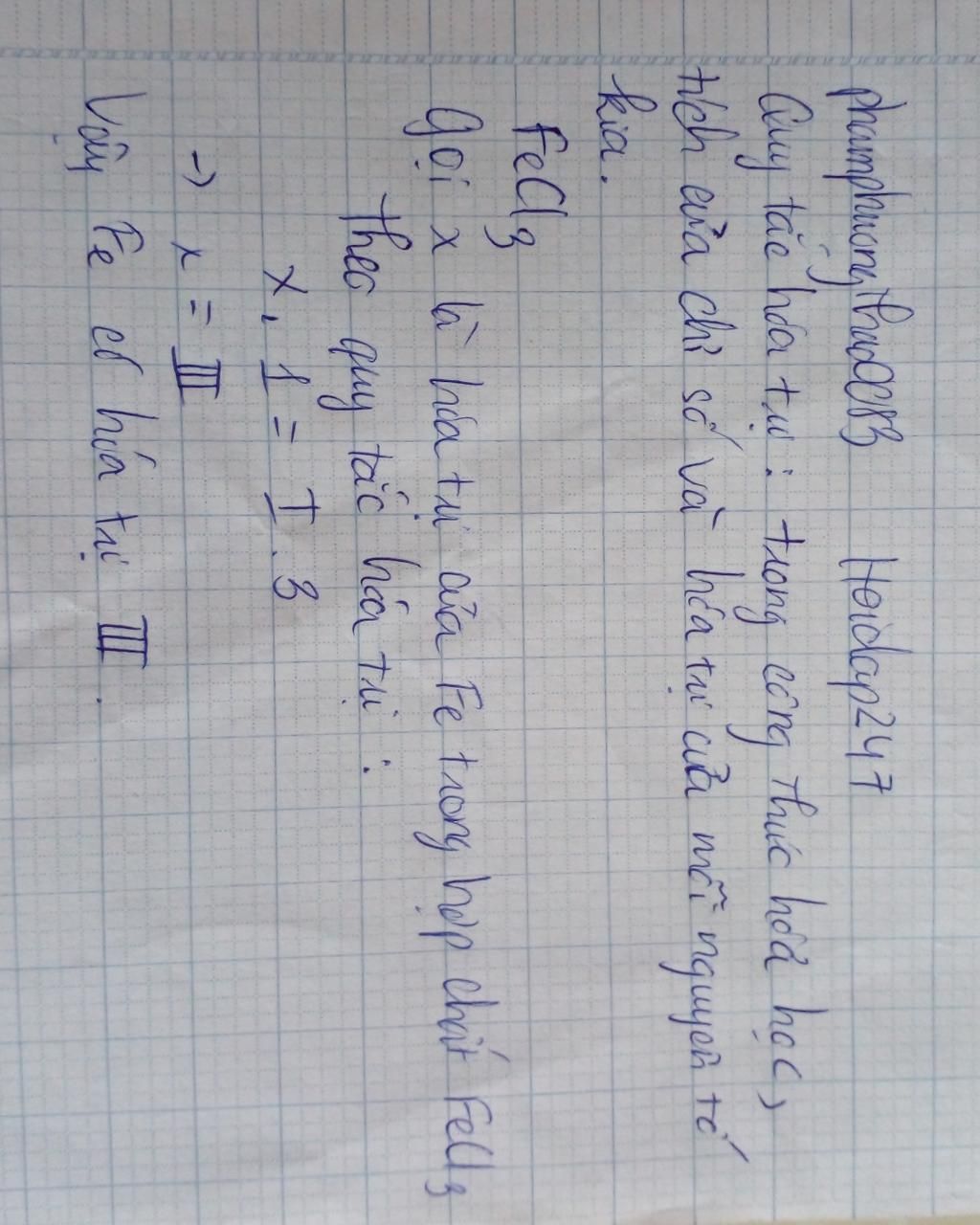 Gọi hóa trị Fe là a ta có Fe x Cl3