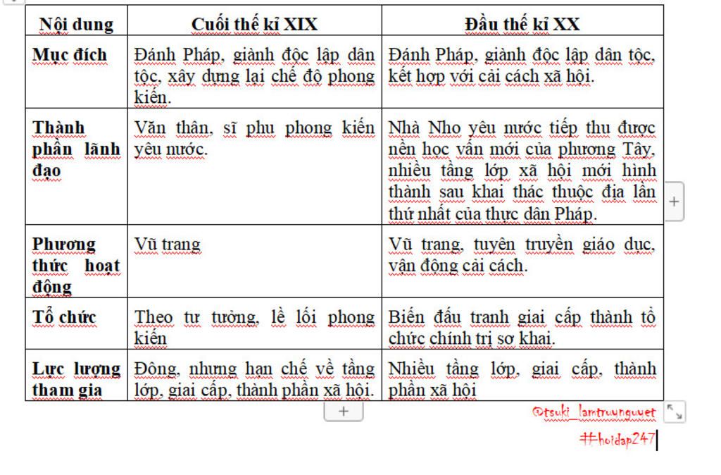 $2.$ Phong trào yêu nước theo khuynh hướng dân chủ tư sản có điểm gì so với phong trào yêu nước cuối thế kỉ XIX ?
