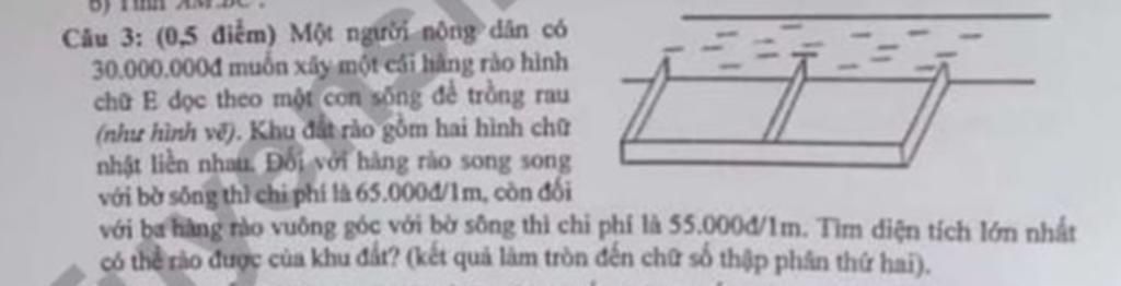 Chiều dải rào song song với bờ sông: $\dfrac{30000-195x}{65}(m)$