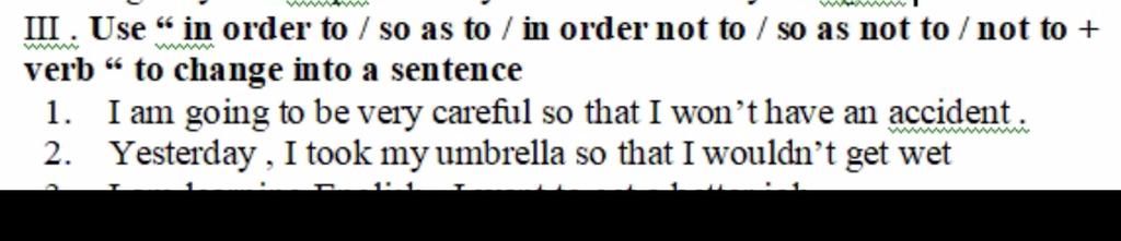 III. Use “ in order to / so as to / in order not to / so as not to / not to +