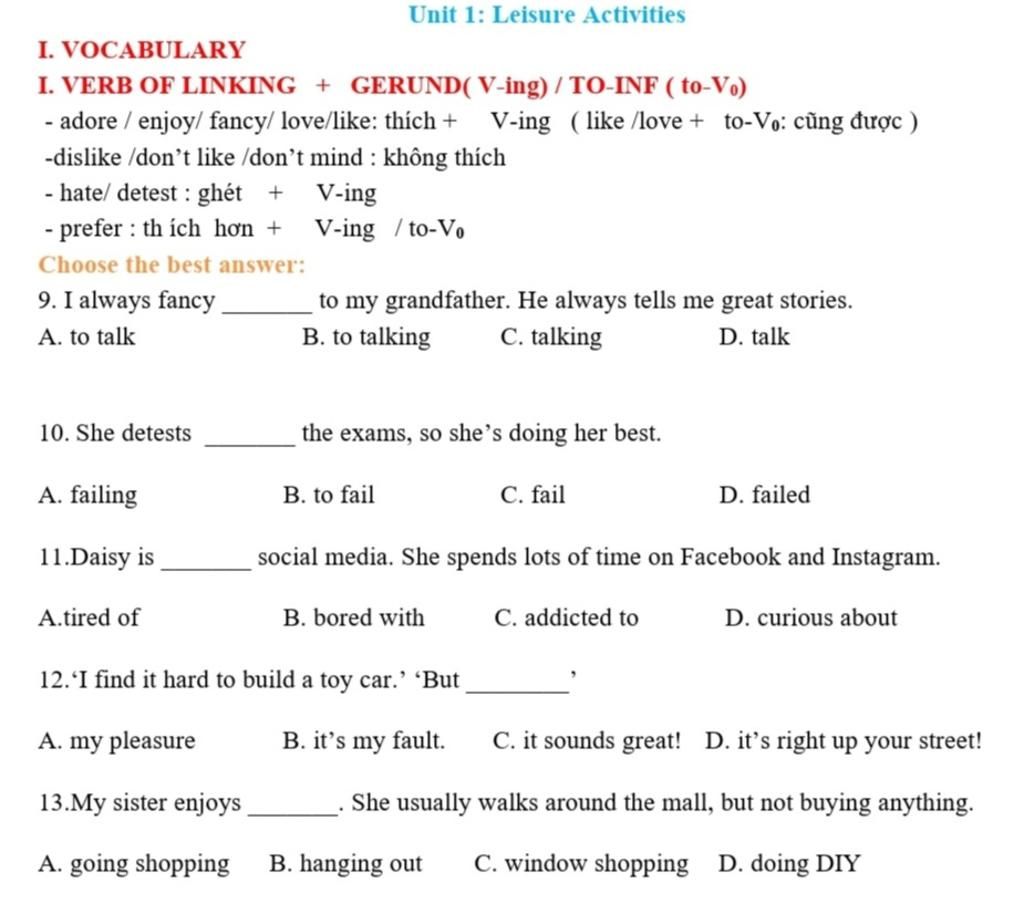 13. C. window shoppingg ( chỉ nhìn mà không có ý định mua)