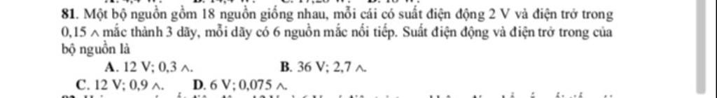 Suất điện động và điện trở trong của bộ nguồn là: