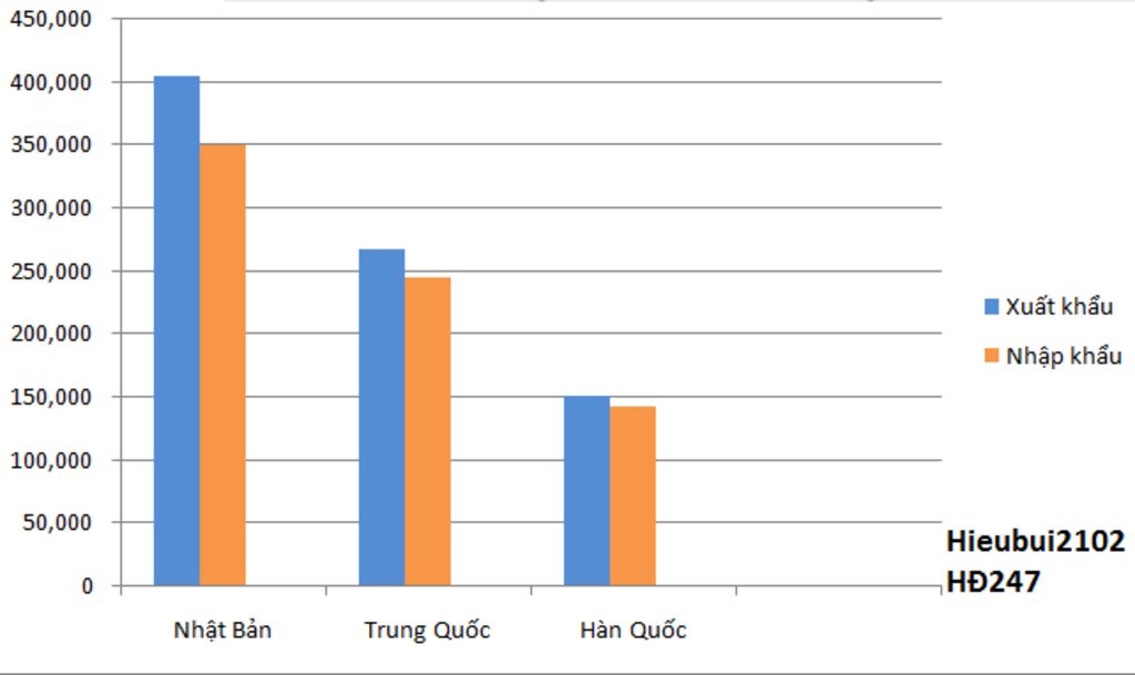 `-` Hàn Quốc là nước có giá trị xuất khẩu vượt giá trị nhập khẩu thấp nhất trong số ba nước.