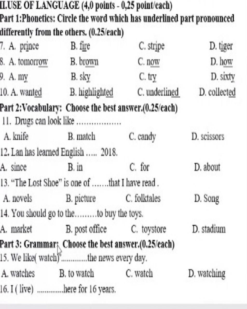 ILUSE OF LANGUAGE (4,0 points - 0,25 point/each)