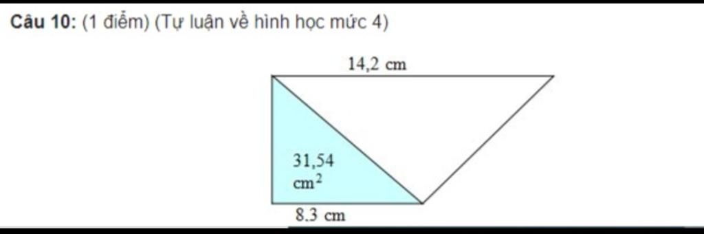 $\text{Vậy diện tích của hình tam giác không tô màu là 53,96$cm^{2}$ }$