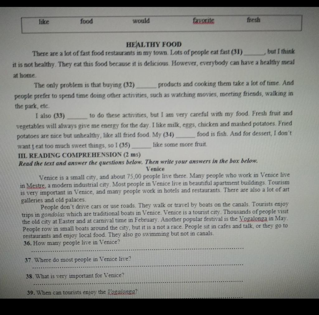 There are a lot of fast food restaurants in my town. Lots of people eat fast (31)