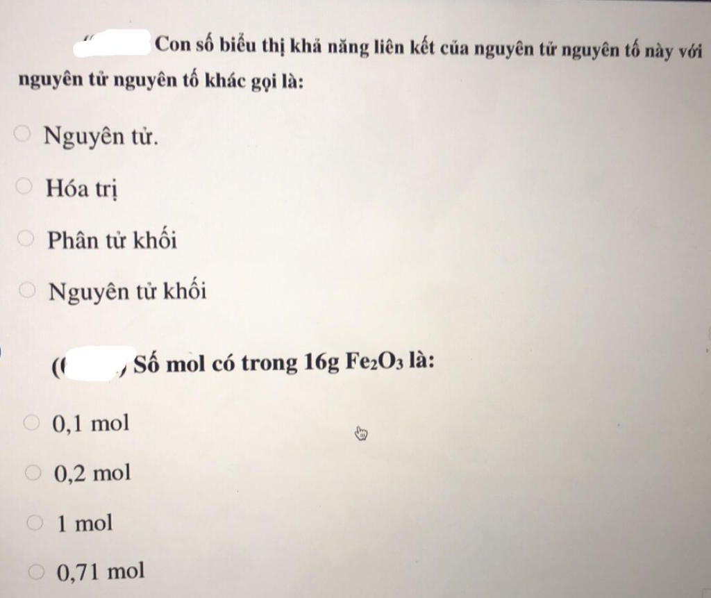 2. $n_{Fe_2O_3}$ = `\frac{16}{160}` = 0,1 (mol)