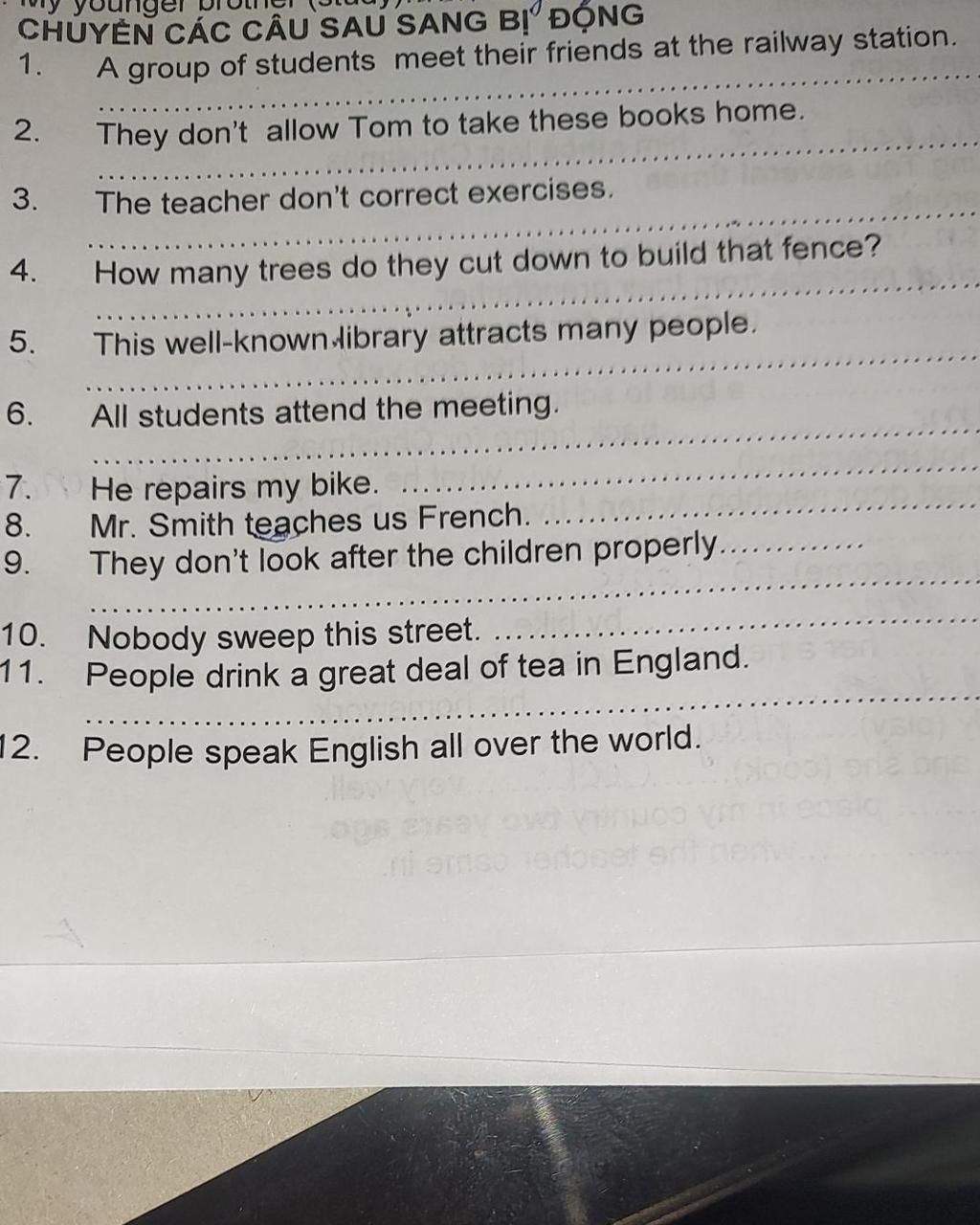 CHUYÊN CÁC CÂU SAU SANG BỊ ĐỘNG