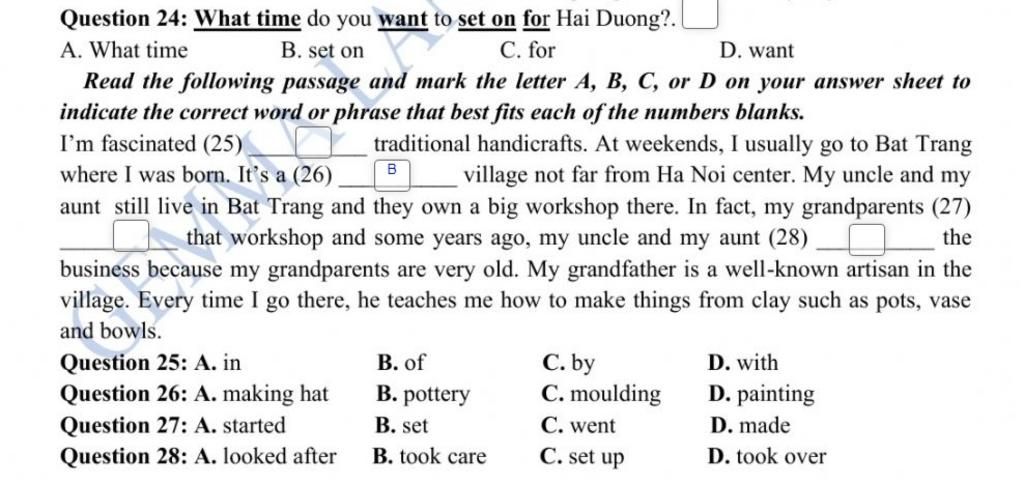 25. C be fascinated by ~ bị lôi cuốn/mê hoặc bởi