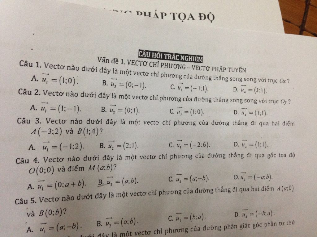 Đường thẳng này có VTPT là ( 1; 0) và VTCP là (0; 1)