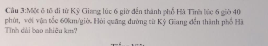 $\text{Thời gian để ô tô đó đi từ Kỳ Giang đến Hà Tĩnh với vận tốc 60km/h là:}$