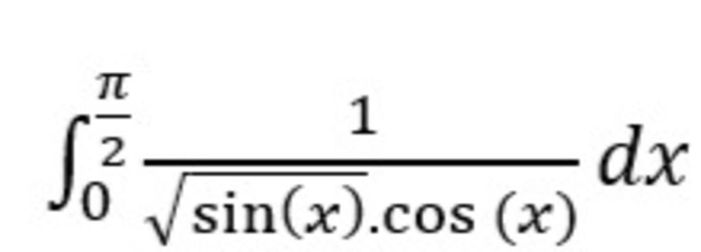 \quad I = \displaystyle\int\limits_0^{\tfrac{\pi}{2}}\dfrac{1}{\sqrt{\sin x}.\cos x}dx = \displaystyle\int\limits_0^{1}\dfrac{1}{\sqrt{\sin x}.\cos x}dx+\displaystyle\int\limits_1^{\tfrac{\pi}{2}}\dfrac{1}{\sqrt{\sin x}.\cos x}dx\\