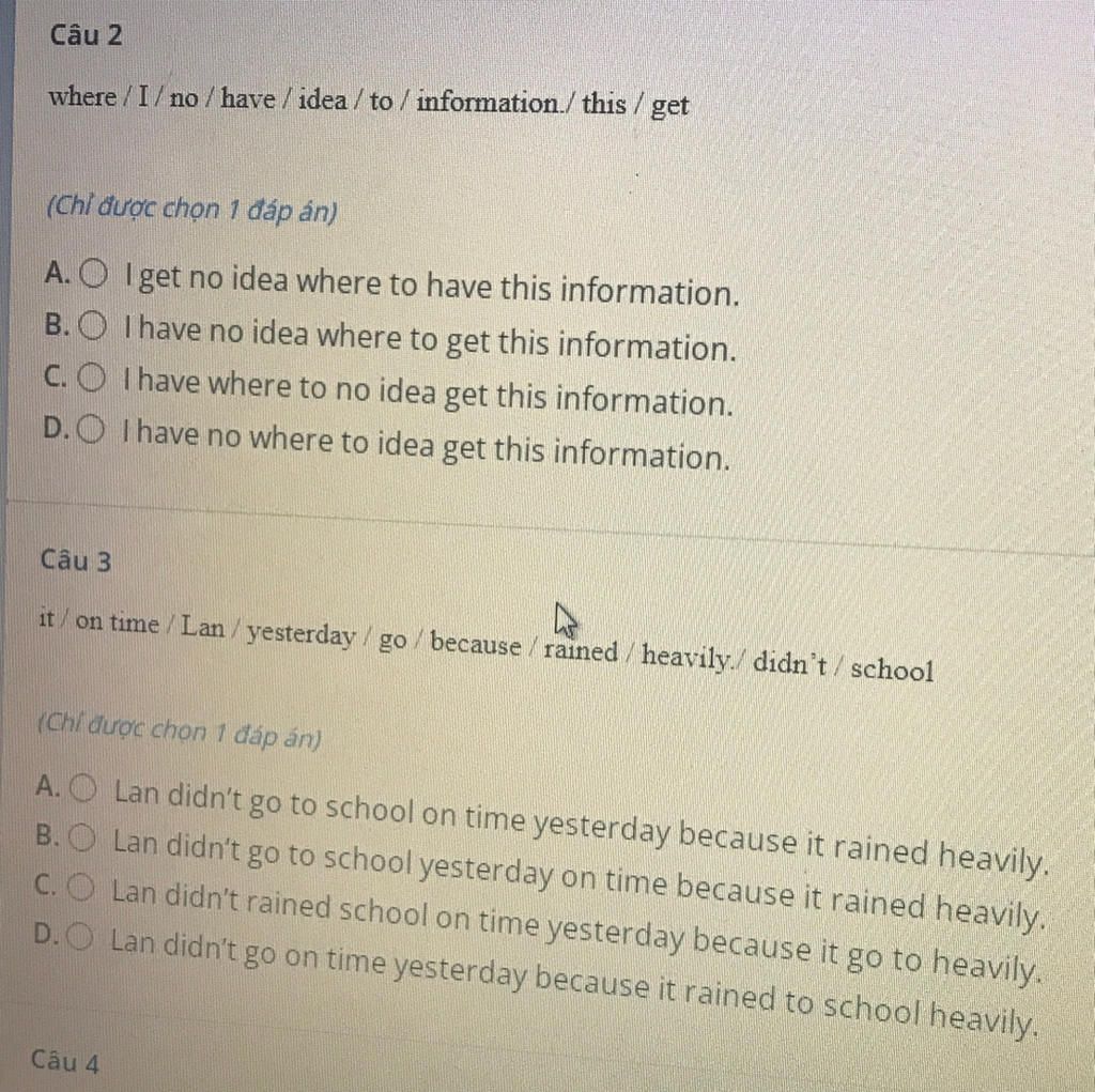 `Trans``:` Lan đã không đi học đúng giờ vào ngày hôm qua bởi vì trời mưa nặng hạt