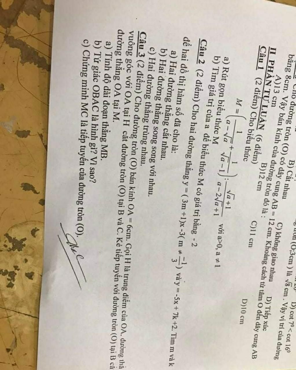 bằng 8cm. Vậy bán kính của đường tròn dó là: