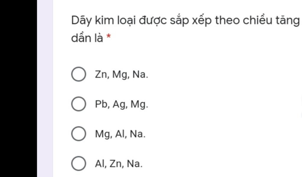 $\text{$\xrightarrow[\text{Tinh kim loại tăng dần}]{\text{Au, Pt, Ag, Cu, H, Pb, Sn, Ni, Fe, Zn, Al, Mg, Ca, Ba, , Na, K}}$}$