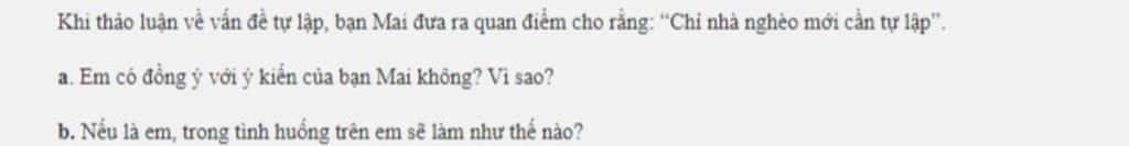 b.Nếu em trong tình huống trên em sẽ giải thích cho bạn Mai hiểu vì sao ai cũng cần phải tự lập.