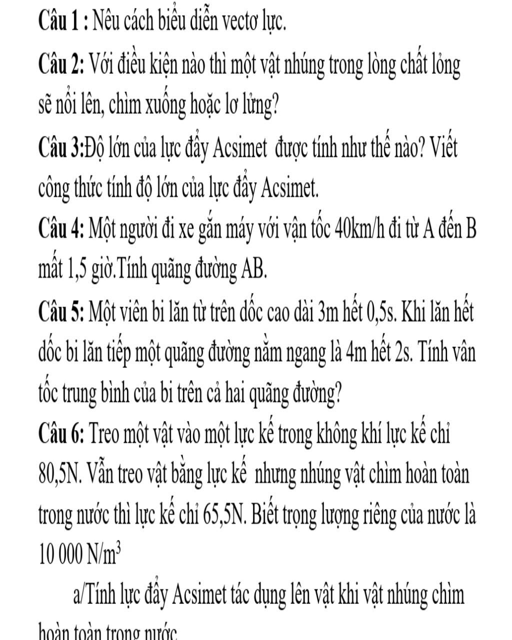 Câu 3:Độ lớn của lực đẩy Acsimet được tính như thể nào? Viết