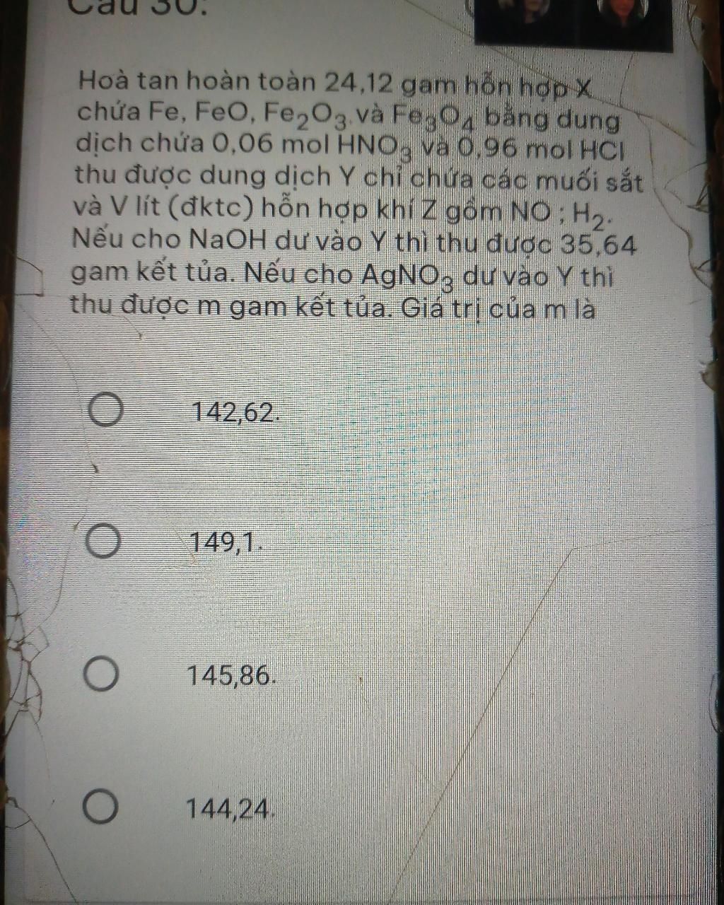 dịch chửa 0,06 mol HNO, va 0,96 mol HCI