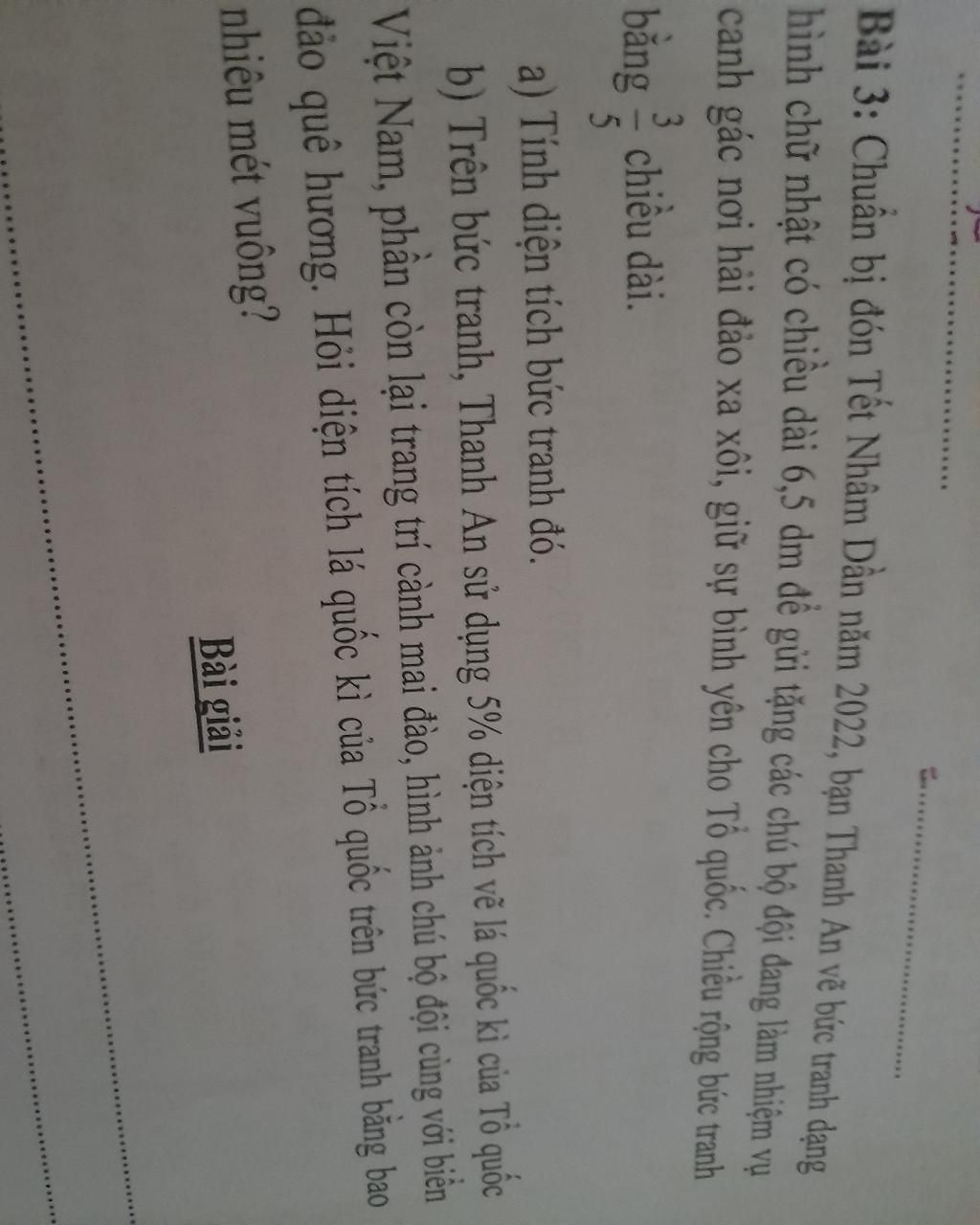 `b)` Diện tích cảu lá cờ quốc kì Tổ Quốc là :