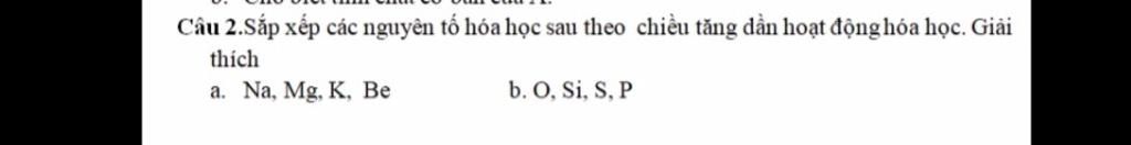 mức độ hoạt động hóa học của phi kim được xác định vào khả năng,mức độ phản ứng