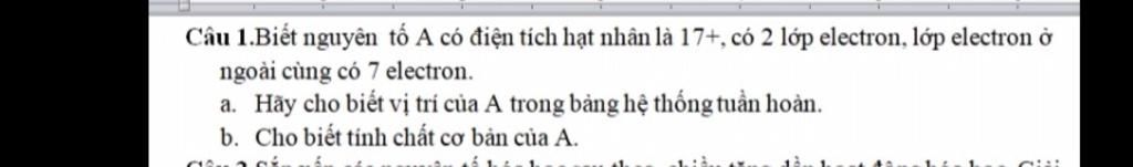 + Nguyên tố $A$ có điện tích hạt nhân là $17^+$